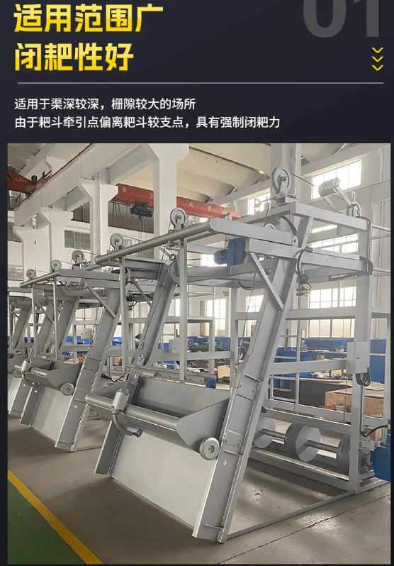 該設(shè)備因采用三根鋼絲繩協(xié)同控制耙斗升降和開閉動作而得名“三索式",其核心功能是通過抓斗形式的耙斗撈取污水中的粗大懸浮物,因此也被廣泛稱為“抓斗格柵"。這種設(shè)備常用于城市污水處理廠、雨水泵站、發(fā)電廠冷卻水系統(tǒng)等場景,主要用于攔截并清除水中的塑料、樹枝、纖維等雜物,保障后續(xù)水泵和處理工藝的正常運行。